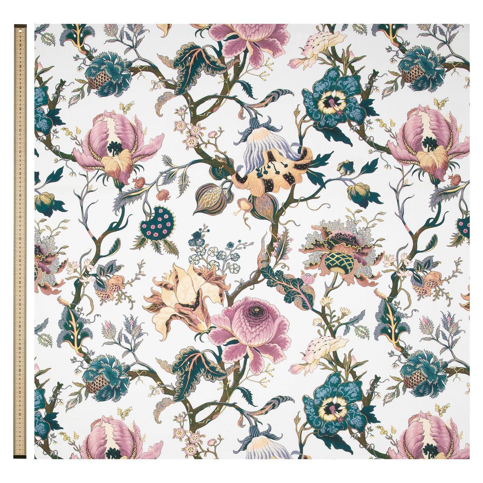 Meticulously crafted to harmonise with diverse interior settings, this fabric transforms spaces with its gentle botanical narrative. Vividly hued blooms emerge against a muted off-white background, bringing sophisticated natural elements into living environments. Perfect for upholstery, curtains and blinds, the design provides visual interest without overwhelming the room.