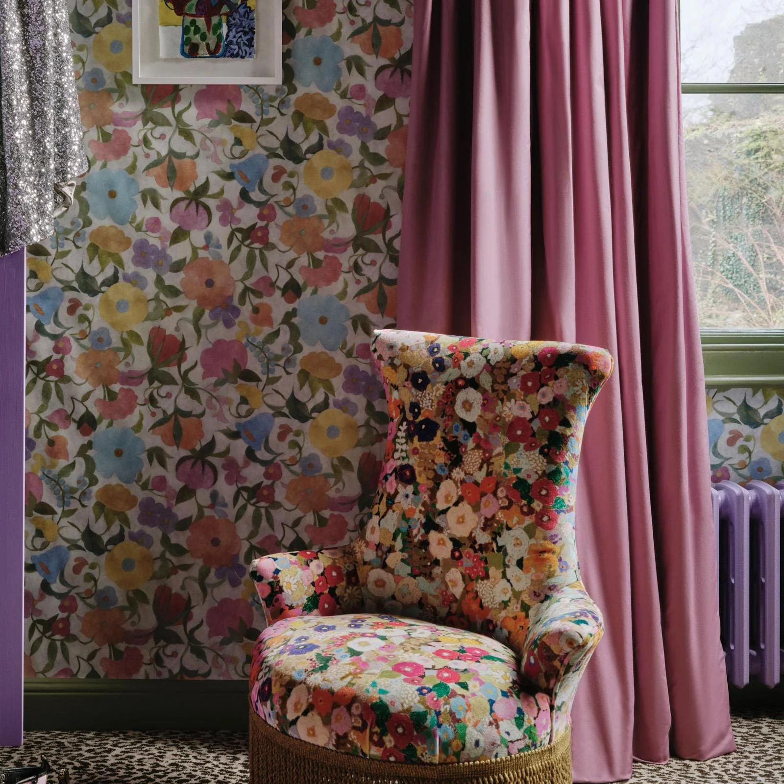 Delicate brush strokes bring each flower to life with remarkable detail. Naive and exuberant, the pattern feels both whimsical and refined. Organic shapes intertwine seamlessly, presenting a natural rhythm that draws the eye and softens any interior space. Perfect for both low and high ceilings, this wallpaper transforms rooms with its gentle, uplifting energy.