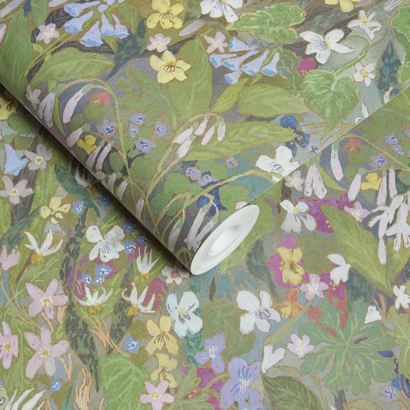 A delicate dance of verdant greens and botanical motifs, this wallpaper captures the essence of a lush garden in full bloom. Soft emerald and sage tones interweave with hand-painted florals, creating a captivating landscape that breathes life into walls. Kerry Simmons' artistic vision transforms simple spaces with painterly posies that cascade and curl with organic spontaneity.