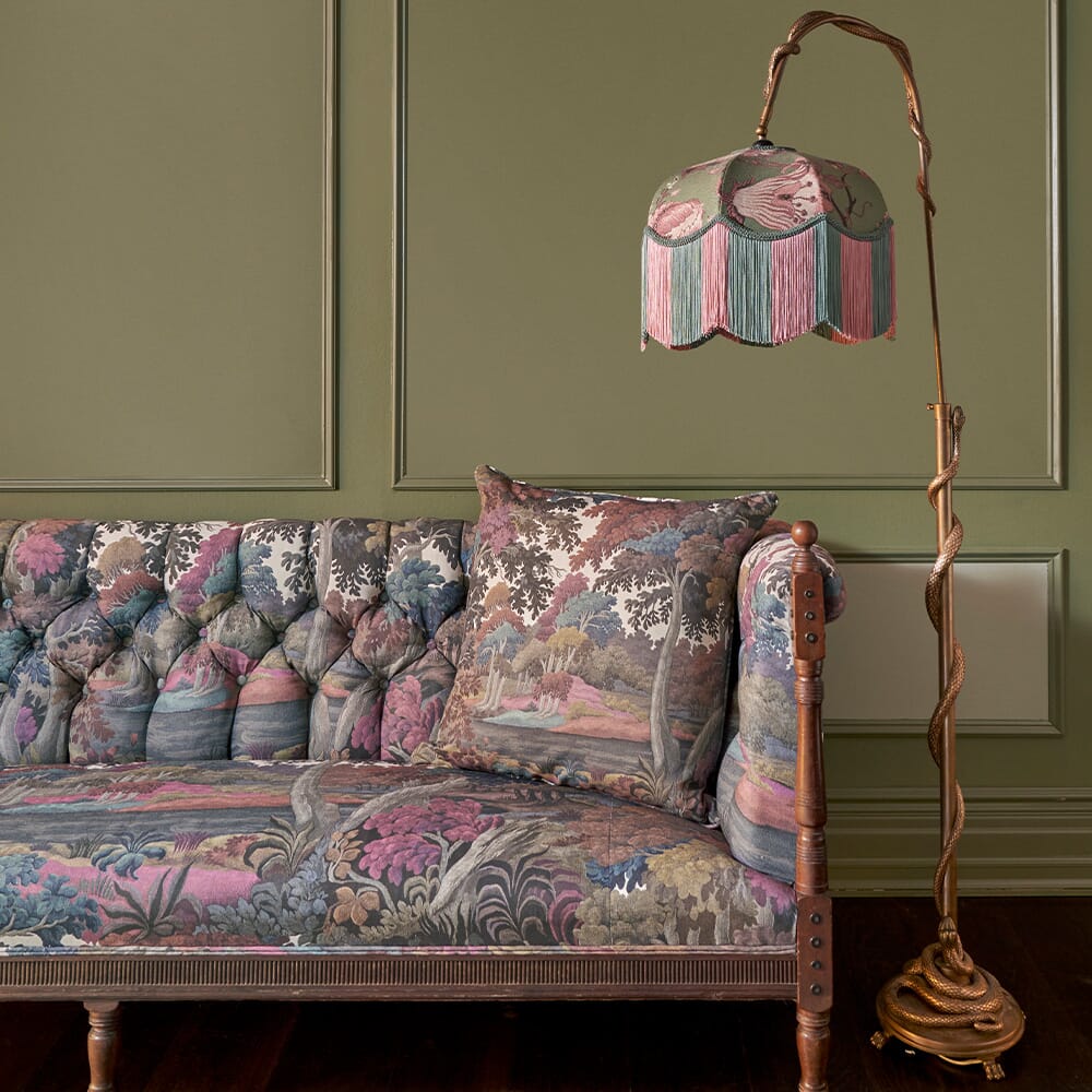 Foliage-inspired cotton linen with a mesmerising forest landscape in rich brown, green, purple, and white tones. Intricate hand-painted trees stretch across the fabric, creating a captivating natural scene that transforms interior spaces. Delicate details reveal a hidden green silhouette nestled within the majestic woodland panorama, inviting closer exploration and wonder. Perfect for upholstery and curtains, this design captures the raw beauty of an untouched forest environment. The nuanced colour palette flows seamlessly between earthy browns and vibrant greens, with subtle purple and white accents adding depth and complexity. Soft cotton linen material ensures comfortable texture and visual interest, making it an exceptional choice for those seeking a sophisticated natural aesthetic. Versatile and dynamic, this cotton linen fabric brings an immersive landscape experience directly into living spaces, connecting interior design with the serene beauty of wilderness.